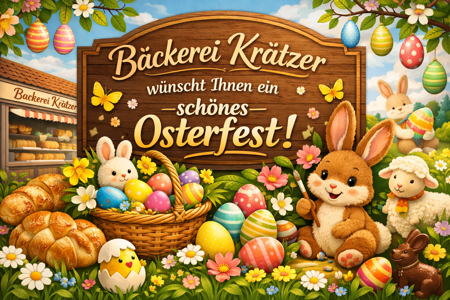 Wir haben für Sie Ostern viele Osterleckereien im Angebot. Lassen Sie sich verführen und probieren Sie unsere Osternester, Osterbrote oder unsere Osterhasen aus Quarkteig.